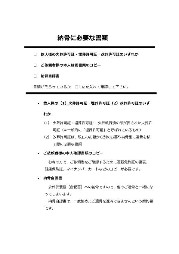 納骨に必要な書類