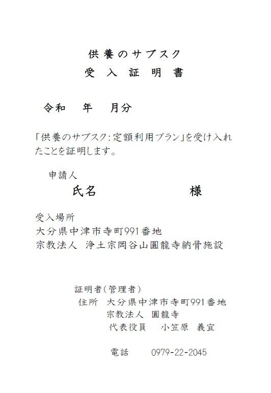 ※納骨自認書は、一度納めたご遺骨を返済できませんという契約書です。